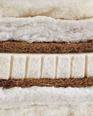 Ein kräftiger Kern aus 5 cm starkem, extra festem Naturkautschuk bildet die Basis und mit der beidseitigen Deckschicht aus Rosshaar oder Kokosfaser entsteht ebenso solide wie elastische Tragkraft. So kommt trotz guter Körperanpassung kein Gefühl des Einsinkens auf. Die Schichten aus zarter Biobaumwolle und edler Schurwolle sorgen an der Oberfläche für sanften Kontakt.